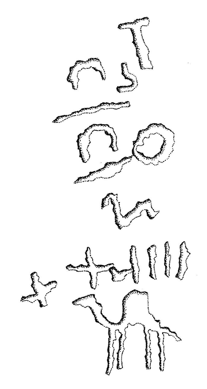 camels, feet, symbols, inscriptions |