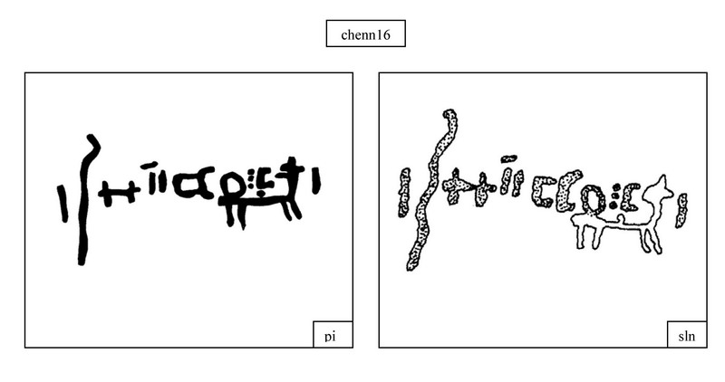 LBI-DATABASE INSCRIPTION DETAILS LBI Code CHEN1_16 Inscription name CHENNA 1_16 Terminology & Specifications Site CHEN1 Country/Island Morocco Position (geogr.) Position (UTM) Elevation 960 Direction 180 Inclination Technique pecked Line width 8-10 Line depth 1-2 Context on panel zoomorphs, anthropomorphs, horseman Context on site various depictions of the "Libyco-Berber type", inscriptions Superimpositions ? Direction of writing hor Lines 1 Type of rock boulder Deposition quartzit Conformation of rock natural cracks Natural defacement very light patina, identic with iconic depictions Vandalism no Archaeological context dry-rock buildings Special conditions Further comments very near to an old path through the valley Date of discovery Pichler 1999 References Pichler 2000:177/Fig. 3.16 Skounti et al. 2003:115-> Reference details Epigraphic comment Transliteration 1: N**LFRHM N Transcription Translation Comment Skounti et al. 2003:115 "Remarquer l'importance exagérée des dimensions du caracere qui semble parfois jouer le rôle de séparateur de 'mots'" Nearby inscriptions CHEN1_1CHEN1_2CHEN1_3CHEN1_4CHEN1_5CHEN1_6CHEN1_7CHEN1_8CHEN1_9CHEN1_10CHEN1_11CHEN1_12CHEN1_13CHEN1_14CHEN1_15CHEN1_17CHEN1_18CHEN1_19CHEN1_20CHEN1_21CHEN1_22CHEN1_23CHEN1_24CHEN1_25CHEN1_26CHEN1_27CHEN1_28CHEN1_29CHEN1_30CHEN1_31CHEN1_32CHEN1_33CHEN1_34CHEN1_35CHEN1_36CHEN1_37CHEN1_38CHEN1_39CHEN1_40CHEN1_41CHEN1_42CHEN1_43CHEN1_44 Pictures and/or drawings Fig. 1: Fig. 2: Earlier documentations Fig. 1: Reference details pi: Pichler, W. (2000a): The Libyco-Berber inscriptions of Foum Chenna (Morocco). Sahara 12. Segrate/Italia. 176-178sk: Skounti, A. et al. (2003): Tirra – Aux origines de l’écriture au Maroc. Etudes et Recherches No.1. CEALPA -> More LBI-References Author and copyright © by Werner Pichler 2007 Terminology & Specifications