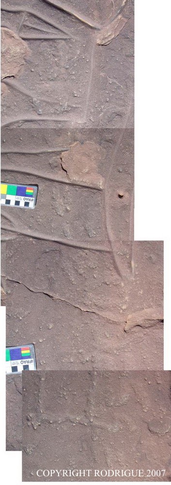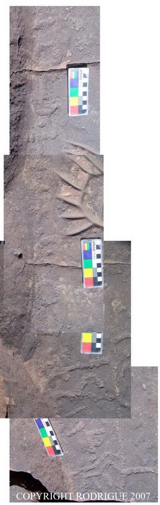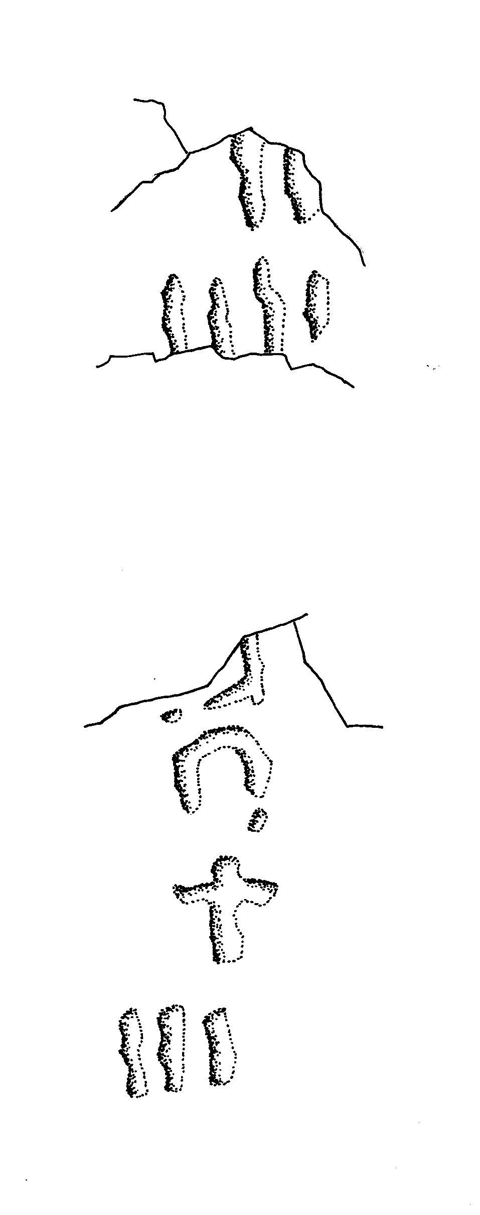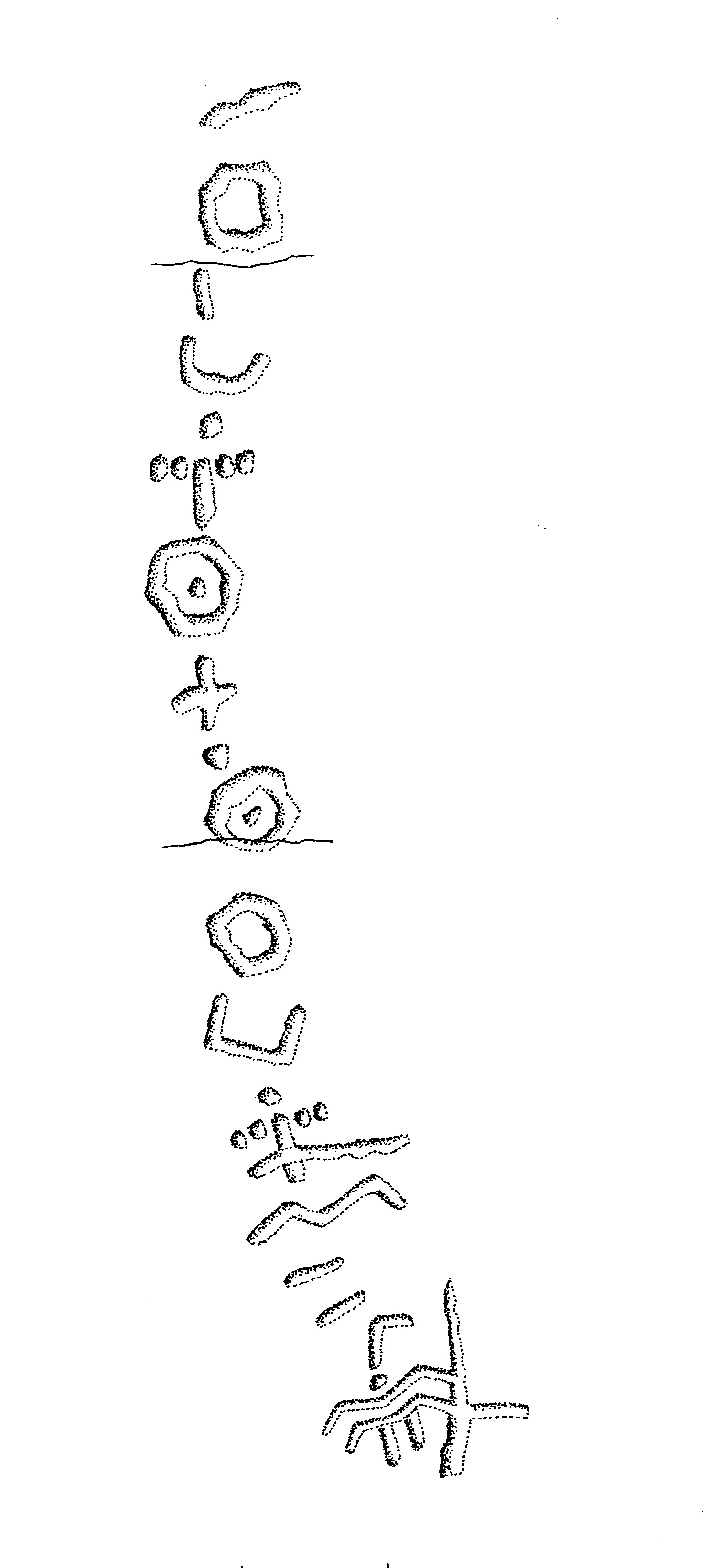 Second sign from above: it is above the polished line on the right and interrupted by the line on the left. If you look very carefully you can see that the writer started to cover the line each side of it, then stopped, as if he didn't want to destroy the polished line. The third sign clearly cuts the line on the right. |