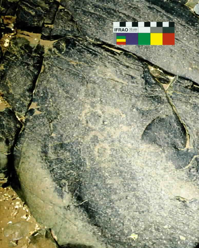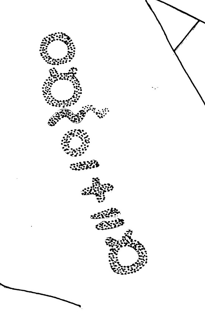 LBI-DATABASE INSCRIPTION DETAILS LBI Code CHEN1_26 Inscription name CHENNA 1_26 Terminology & Specifications Site CHEN1 Country/Island Morocco Position (geogr.) Position (UTM) Elevation 960 Direction 40 Inclination Technique pecked Line width 5-10 Line depth 1-2 Context on panel no Context on site various depictions of the "Libyco-Berber type", inscriptions Superimpositions no Direction of writing vert Lines 1 Type of rock boulder Deposition quartzit Conformation of rock Natural defacement very light patina, identic with iconic depictions Vandalism no Archaeological context dry-rock buildings Special conditions Further comments very near to an old path through the valley Date of discovery Pichler 2000 References Pichler 2000:177/Fig.4.26 Skounti et al. 2003:91-> Reference details Epigraphic comment Transliteration 1: FLTNRS3FR Transcription Translation Comment Skounti et al 2003:91 "Les dimensions exagérées du caractère lui conféreraient-elles une fonction de séparateur de 'mots'?" Nearby inscriptions CHEN1_1CHEN1_2CHEN1_3CHEN1_4CHEN1_5CHEN1_6CHEN1_7CHEN1_8CHEN1_9CHEN1_10CHEN1_11CHEN1_12CHEN1_13CHEN1_14CHEN1_15CHEN1_16CHEN1_17CHEN1_18CHEN1_19CHEN1_20CHEN1_21CHEN1_22CHEN1_23CHEN1_24CHEN1_25CHEN1_27CHEN1_28CHEN1_29CHEN1_30CHEN1_31CHEN1_32CHEN1_33CHEN1_34CHEN1_35CHEN1_36CHEN1_37CHEN1_38CHEN1_39CHEN1_40CHEN1_41CHEN1_42CHEN1_43CHEN1_44 Pictures and/or drawings Fig. 1: Fig. 2: Earlier documentations Fig. 1: Reference details pi: Pichler, W. (2000a): The Libyco-Berber inscriptions of Foum Chenna (Morocco). Sahara 12. Segrate/Italia. 176-178sk: Skounti, A. et al. (2003): Tirra – Aux origines de l’écriture au Maroc. Etudes et Recherches No.1. CEALPA -> More LBI-References Author and copyright © by Werner Pichler 2007 Terminology & Specifications