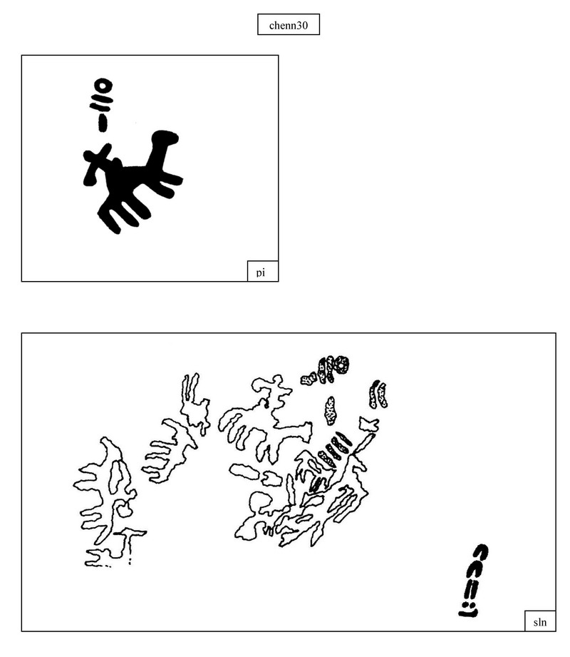 LBI-DATABASE INSCRIPTION DETAILS LBI Code CHEN1_30 Inscription name CHENNA 1_30 Terminology & Specifications Site CHEN1 Country/Island Morocco Position (geogr.) Position (UTM) Elevation 960 Direction 60 Inclination Technique pecked Line width 8-12 Line depth 1-2 Context on panel camelrider, horsemen, anthropomorphs, zoomorphs Context on site various depictions of the "Libyco-Berber type", inscriptions Superimpositions no Direction of writing vert Lines 1 Type of rock boulder Deposition quartzit Conformation of rock natural cracks Natural defacement very light patina, identic with iconic depictions Vandalism no Archaeological context dry-rock buildings Special conditions Further comments very near to an old path through the valley Date of discovery Pichler 2000 References Pichler 2000:177/Fig.4.30 Skounti et al. 2003:89-> Reference details Epigraphic comment Transliteration 1: ZLR Transcription Translation Comment Skounti et al. 2003:89 "Hormis les deux lignes dont l'une est associée à des figurations rupestres et l'autre isolée, le panneau renferme des traits qui pourraient des esquisses de quadrupèdes" Nearby inscriptions CHEN1_1CHEN1_2CHEN1_3CHEN1_4CHEN1_5CHEN1_6CHEN1_7CHEN1_8CHEN1_9CHEN1_10CHEN1_11CHEN1_12CHEN1_13CHEN1_14CHEN1_15CHEN1_16CHEN1_17CHEN1_18CHEN1_19CHEN1_20CHEN1_21CHEN1_22CHEN1_23CHEN1_24CHEN1_25CHEN1_26CHEN1_27CHEN1_28CHEN1_29CHEN1_31CHEN1_32CHEN1_33CHEN1_34CHEN1_35CHEN1_36CHEN1_37CHEN1_38CHEN1_39CHEN1_40CHEN1_41CHEN1_42CHEN1_43CHEN1_44 Pictures and/or drawings Fig. 1: Fig. 2: Earlier documentations Fig. 1: Reference details pi: Pichler, W. (2000a): The Libyco-Berber inscriptions of Foum Chenna (Morocco). Sahara 12. Segrate/Italia. 176-178sk: Skounti, A. et al. (2003): Tirra – Aux origines de l’écriture au Maroc. Etudes et Recherches No.1. CEALPA -> More LBI-References Author and copyright © by Werner Pichler 2007 Terminology & Specifications