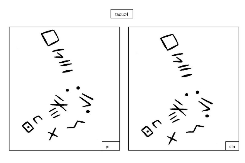 "La disposition des deux lignes inférieures est problématique. Ce panneau compte trois des quatre points que comprennent les inscriptions de Taouz" |