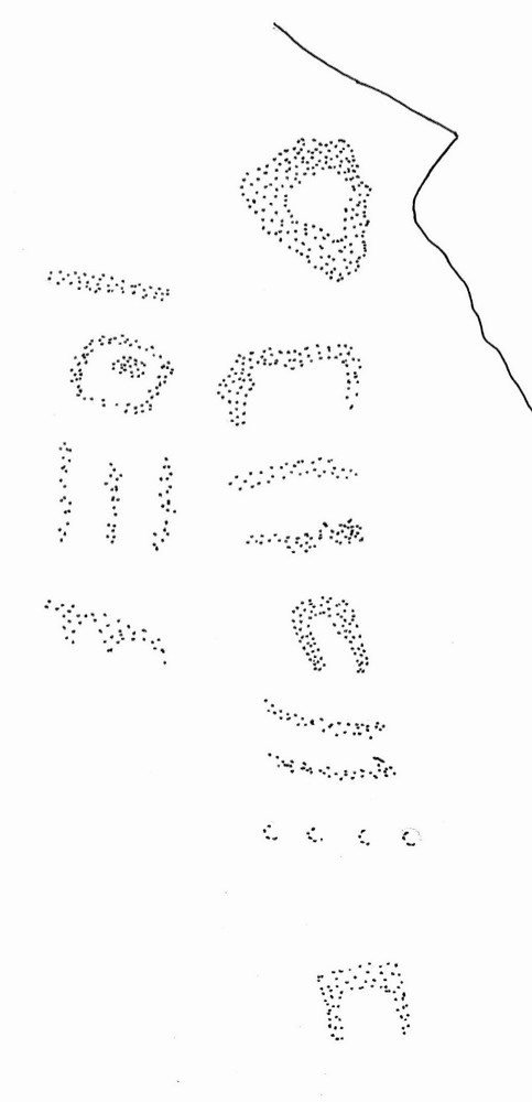 "C'est l'une des deux seules inscriptions de Foum Chenna qui continnent le caractère . Par ailleurs, on relève dans ce site plusieurs lignes qui renferment, souvent au milieu, le caractère gravé en très petites dimensions par rapport à celles des autres caractères comme c'est le cas ici dans la ligne à droite" |
